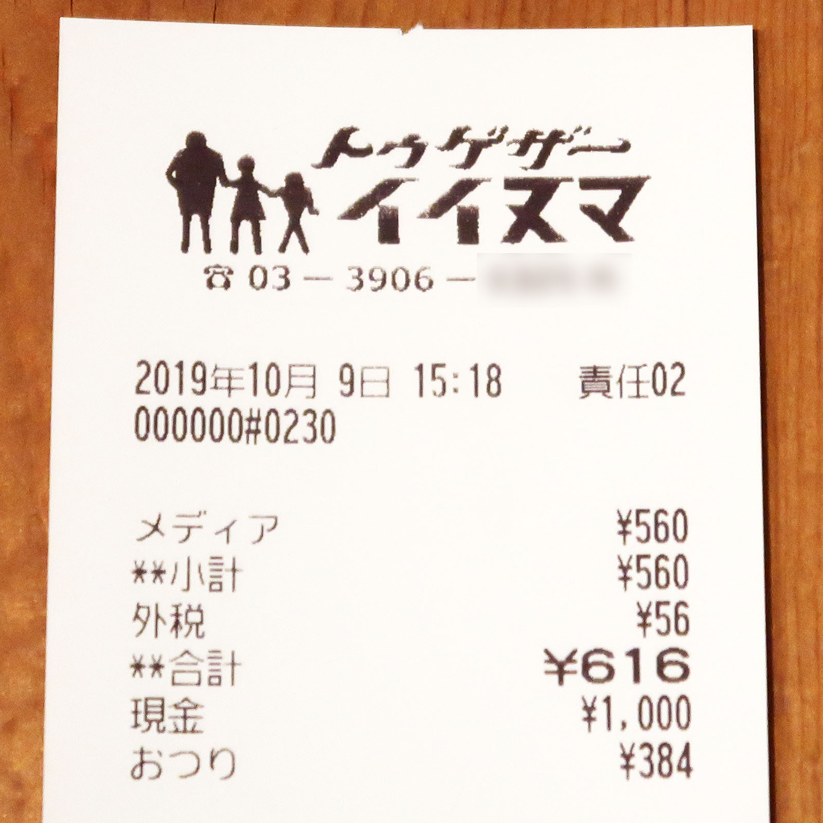 記念のレシートにはあの三人連れマークが。嬉しすぎる・・