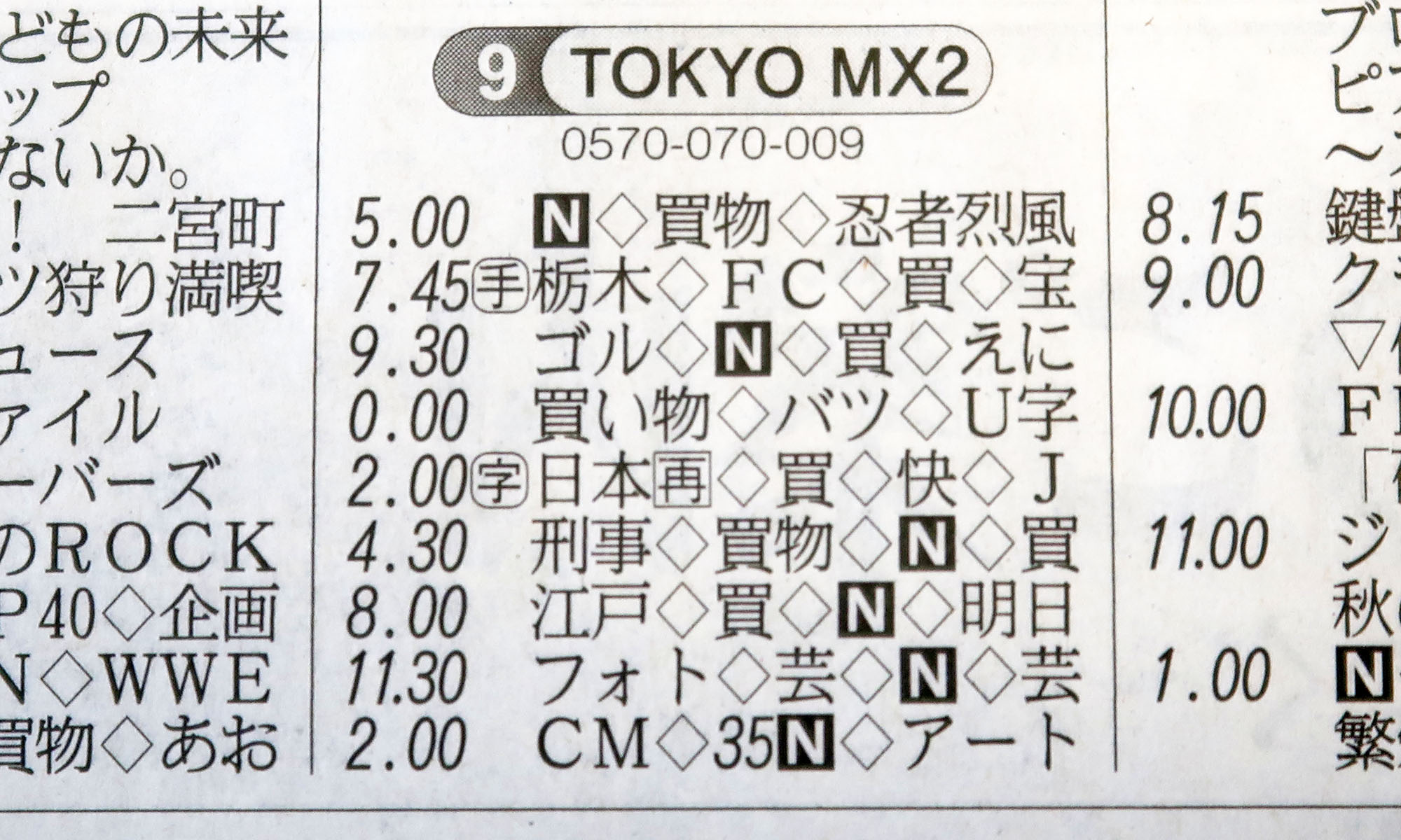 「買い物」「買物」「買」と3通りに表記されるMXテレビ