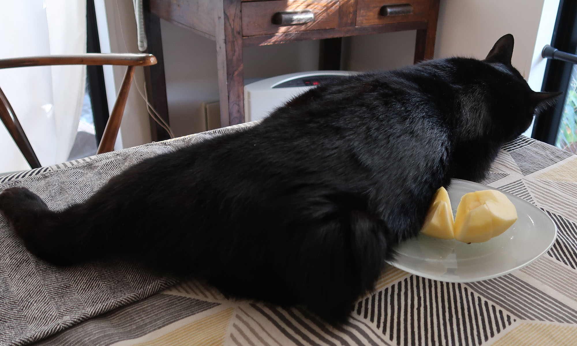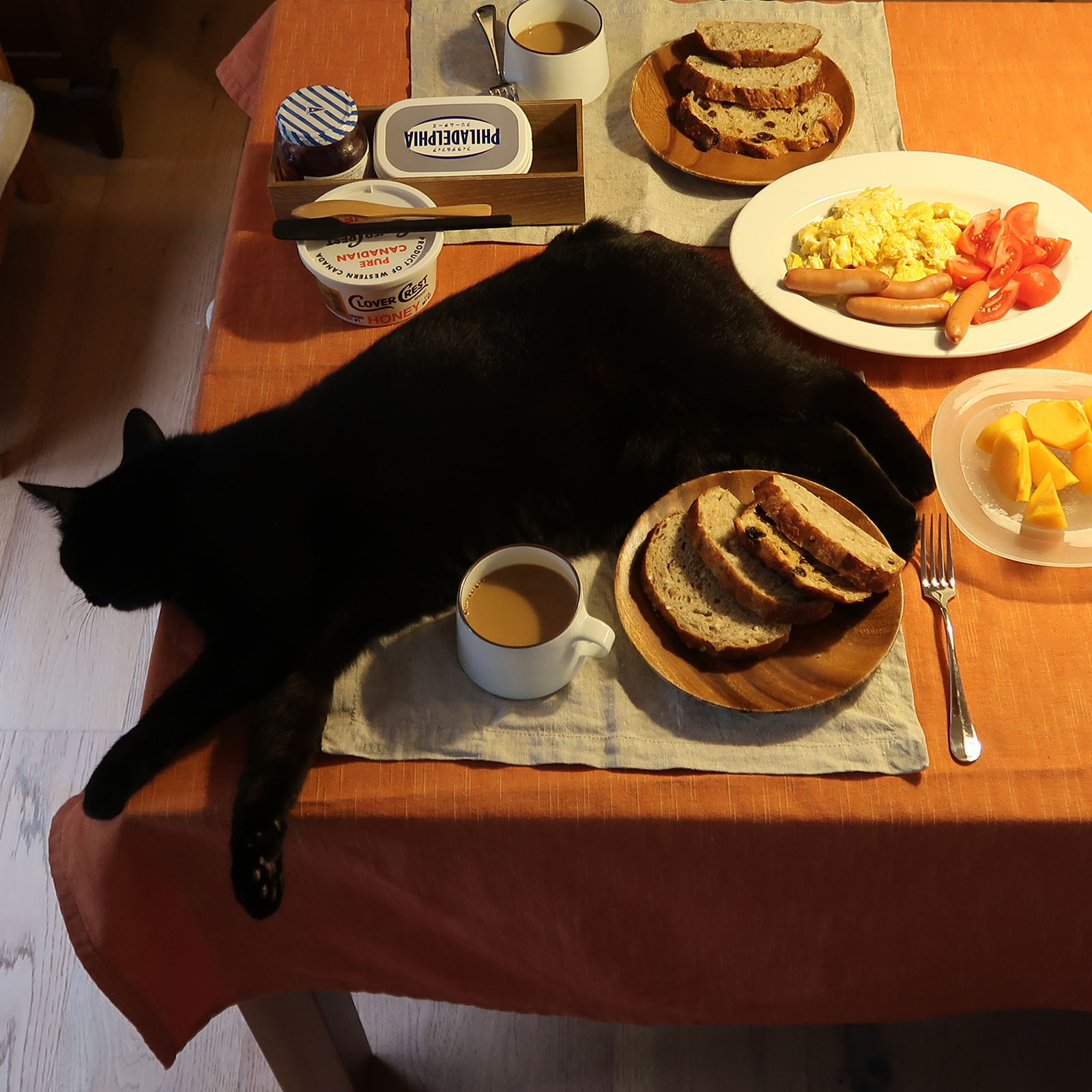 猫の隙間を縫って配膳される食卓