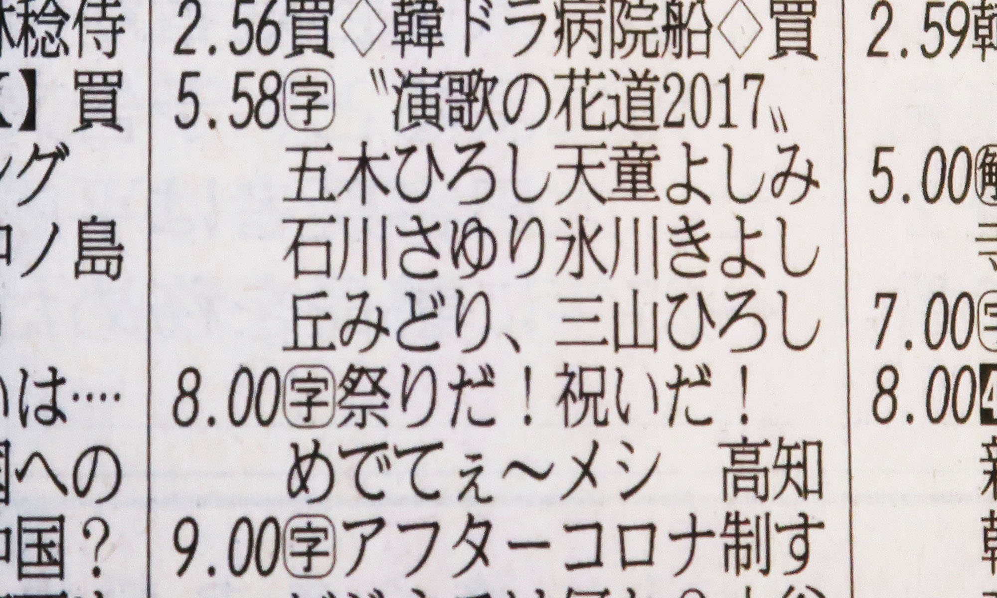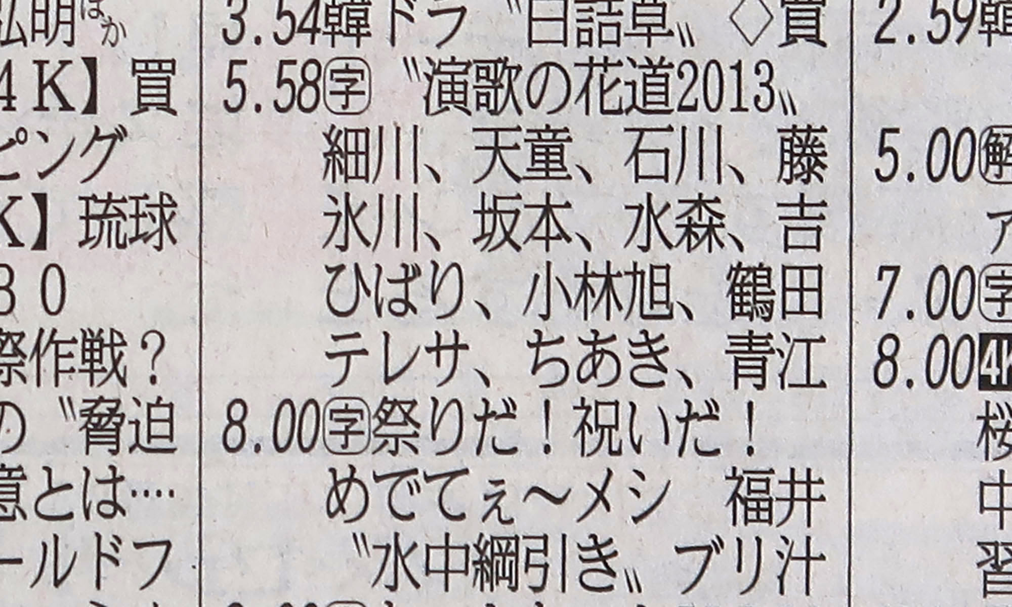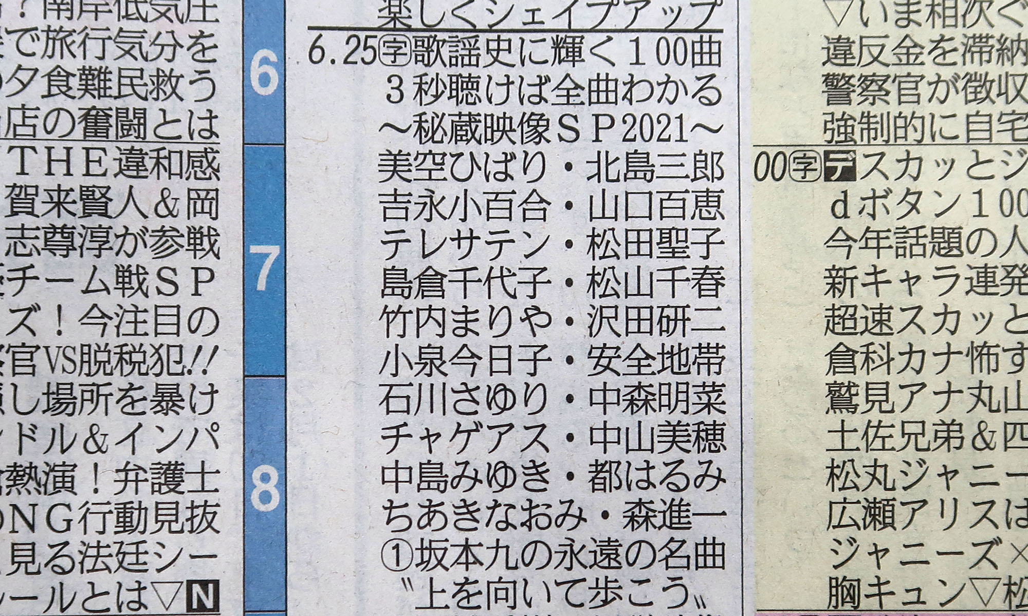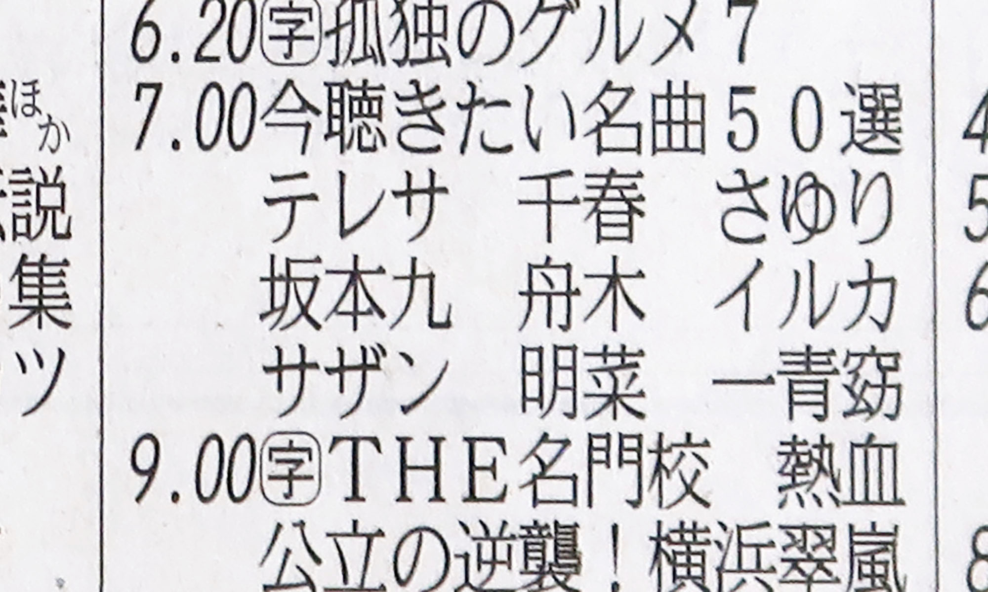 テレビ東京の番組欄、歌手名を収めるパズルで躍起になってる感じが好き