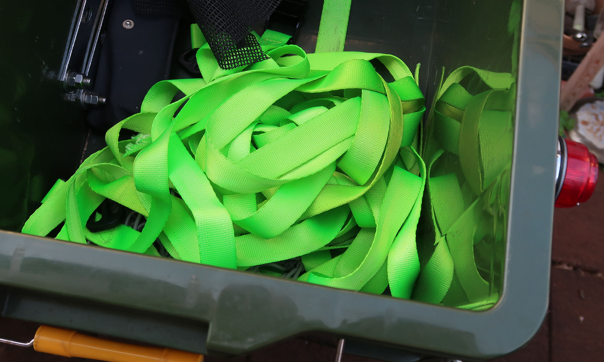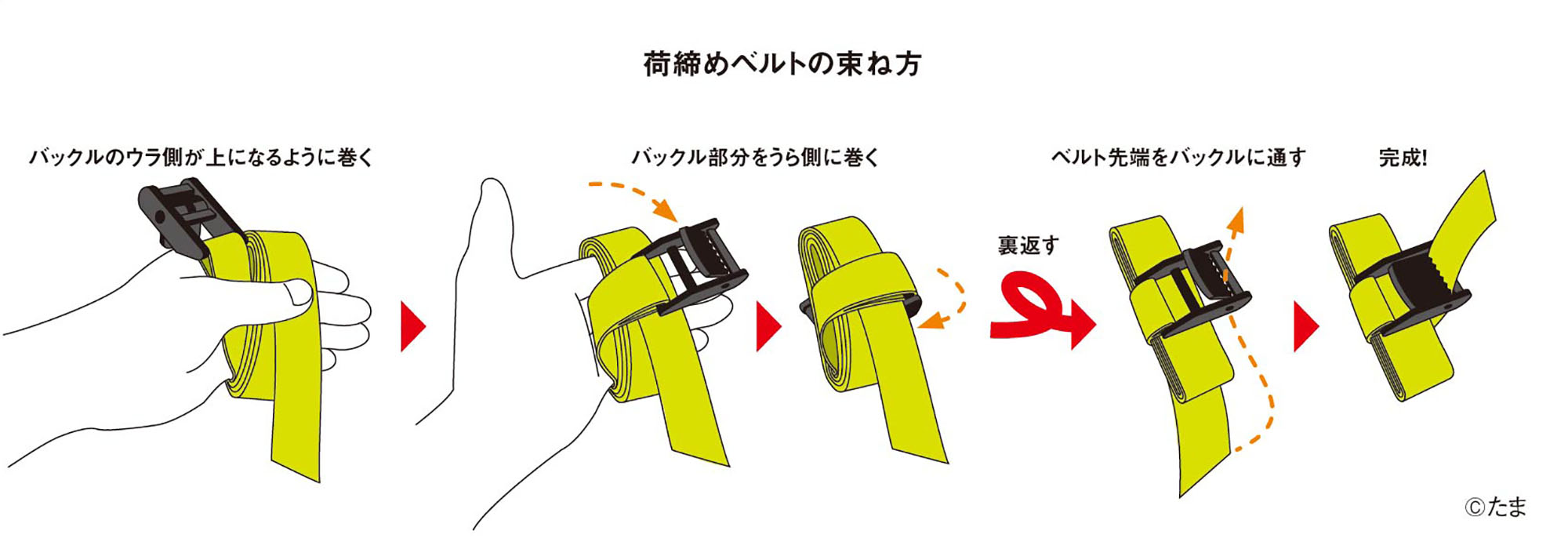 荷締めベルトがバイクの荷箱の中でいつも絡まっているのを反省しまして、