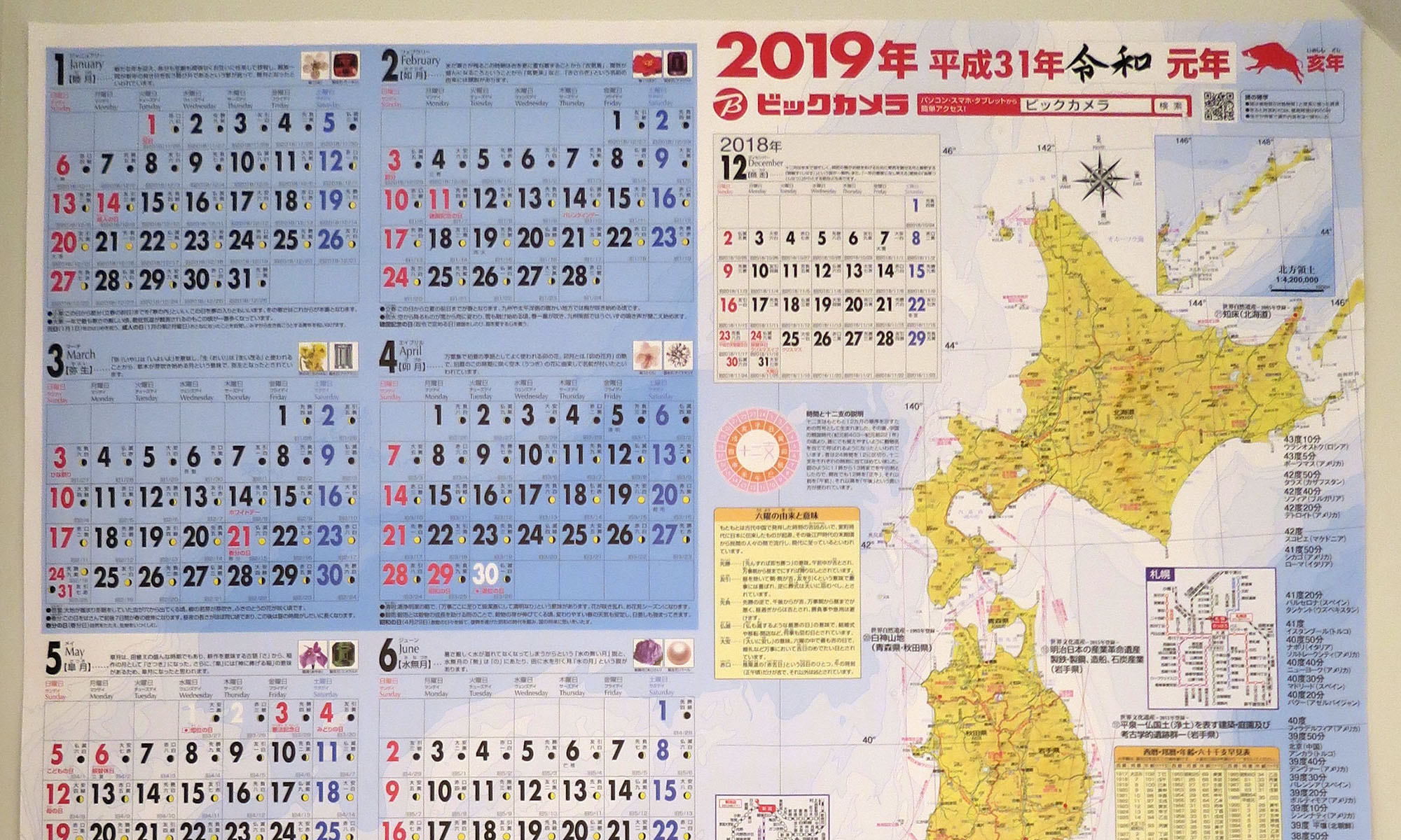 愛用のビックカメラのカレンダー