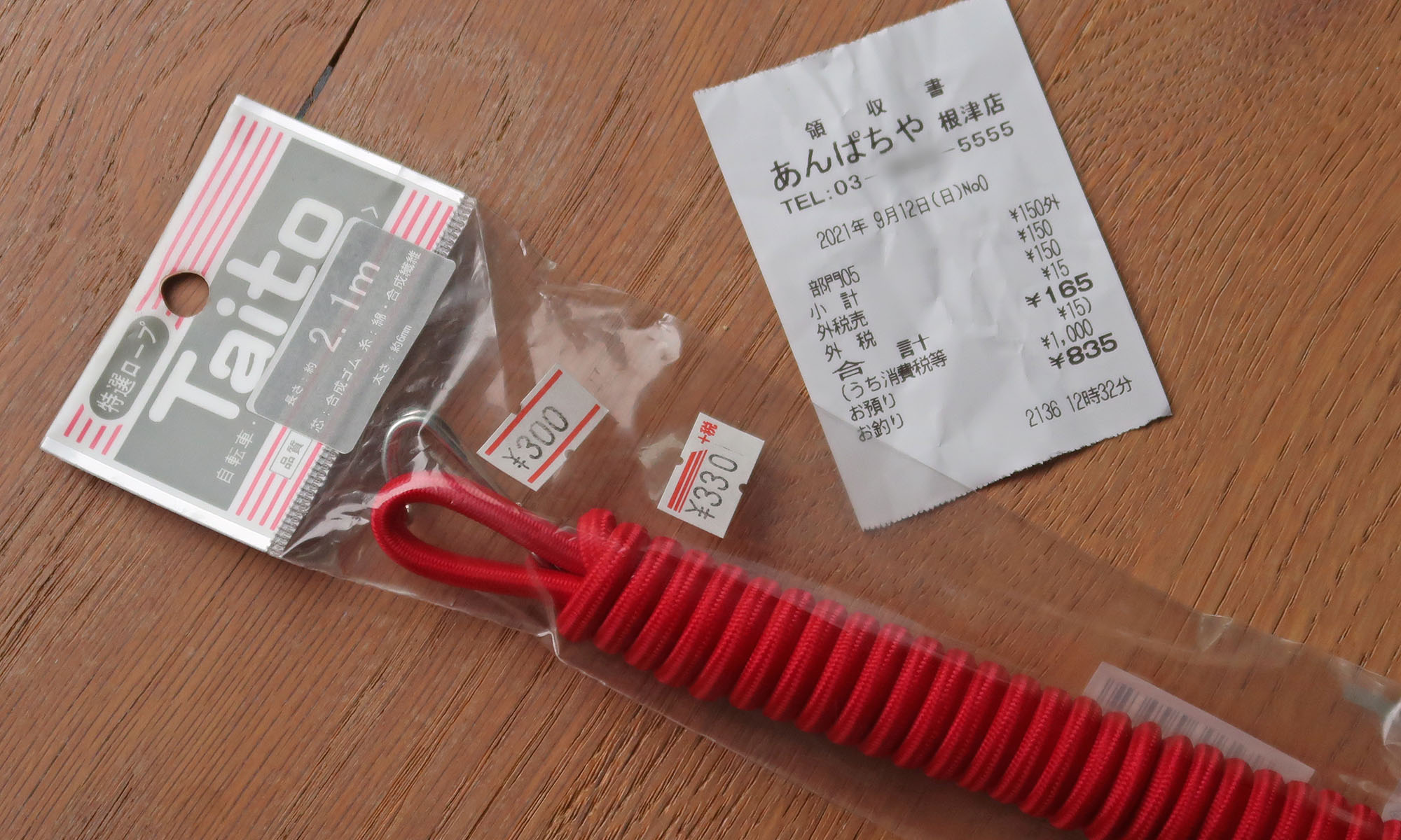 記念に自転車の荷掛けヒモを買いました。