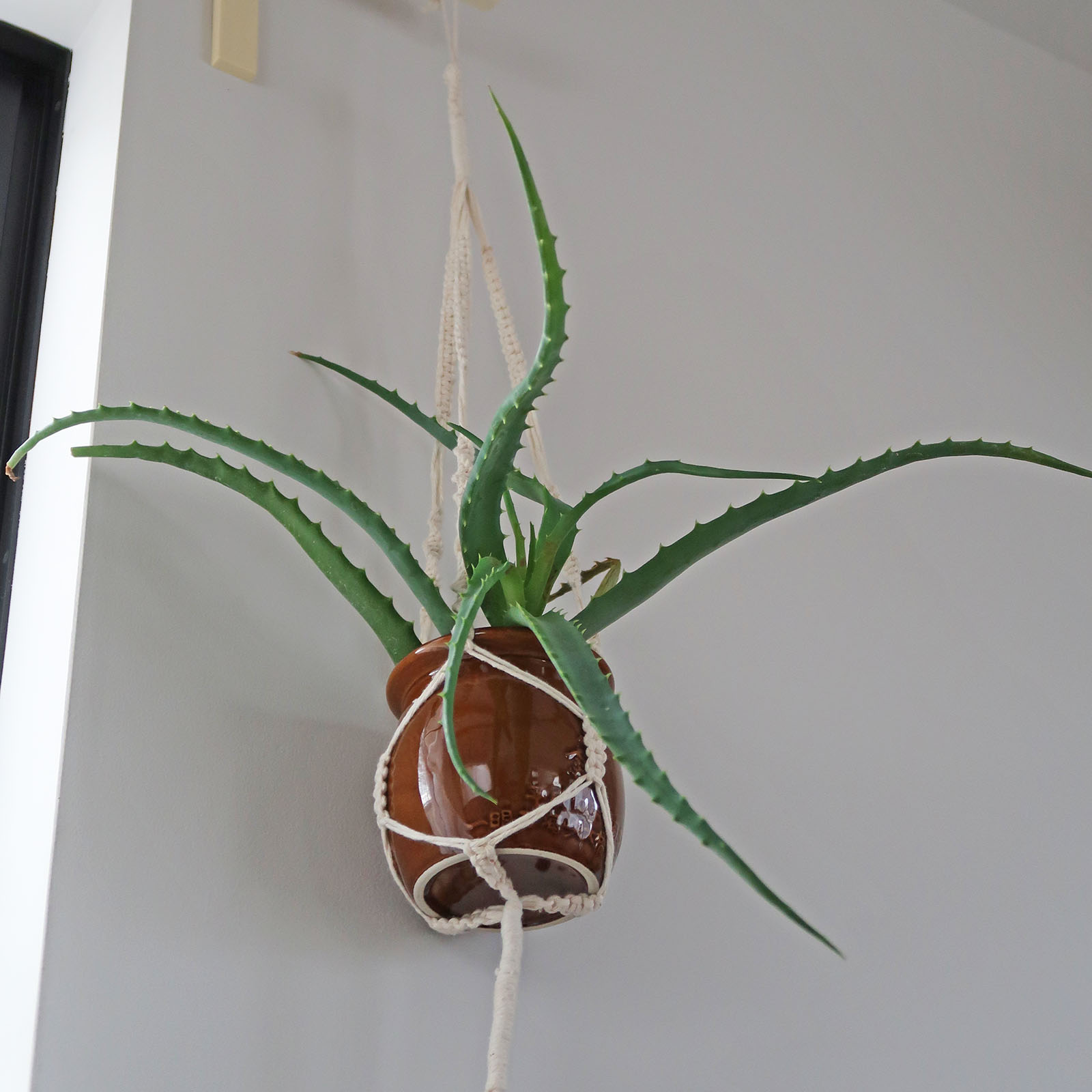 カミさんが「淡路屋のひっぱりだこ飯」容器にアロエを活けたら意外なほどのタコ感