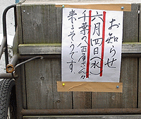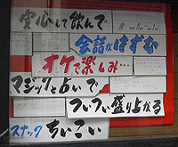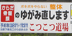 ![]() 朱肉が要らないのだったら入らないといけないし、 入らないのだったら朱肉が要るし。 5月12日 港区南青山 ![]() 見本が飾ってあるのは良いが、 全部同じにしか見えません。 5月18日 練馬区旭丘 ![]() 恐い店なのか、可愛い店なのか。 5月18日 杉並区阿佐ヶ谷 ![]() 首切っといて延命もないだろう。 有りがちなネーミングではありますが。 5月24日 荒川区南千住 ![]() 読みづらいよう。 5月24日 荒川区南千住 ![]() 漏水用水受だそうです。ツボです。 5月28日 港区北青山 ![]() スーパーのアイデア道具市みたいなコーナーで、 何故か歯科用器具を売っていた。 5月31日 台東区上野「吉池」 ![]() 曜日だけ英語並記、外国人にとって親切なのか? 「可燃」とか「不燃」は読めるのか? 「水」と「木」を見間違え易いからかな。 5月31日 荒川区西日暮里 ![]() ここは歩道がないから危ないっすよ。 人も車もそれほど通らないが。 5月31日 荒川区西日暮里 ![]() コピー&ペースト看板。 5月31日 荒川区西日暮里 ![]() JR東日本のキャラクターなのだが、この娘、 以前はOL風で「J子ちゃん」と表記されていた記憶が。 いつの間に嫁に行ってしまったんだ・・。 5月31日 JR日暮里駅 末は博士か大臣か、親の願いを見事に叶えた孝行者。 お陰でフリガナが欠かせない。 6月1日 JR日暮里駅 ![]() 誰ですかイサオちゃんて。 何よりこの書体。イサオちゃん直筆か。 6月1日 台東区根岸 ![]() 駐車違反。 6月1日 台東区根岸 ![]() 「ヤマノテ プラットフォーム セット」 掲示板とゴミ箱一式がセットものらしい。 こんなもんロゴで表示してどうする。 6月1日 JR鴬谷駅 ![]() ボキボキやらないのは恐くなくていいかも。 それにしても、顔も整体できるのか? 6月1日 JR鴬谷駅 ![]() 「違返」じゃなくて「違反」。 「返」の字のシンニュウが余計です。 シンニュウ禁止と言っておこう。 6月2日 豊島区南長崎 ![]() 何ゆえこんな書体に。 6月3日 某健康保険組合内 ![]() 具体的なような曖昧なような。 行商人は気まぐれなのか。 6月3日 豊島区上池袋 ![]() これは暖簾の位置が悪いだろう。 煤けちゃってます。 6月3日 新宿区西早稲田 ![]() 時代を感じさせる掲示だ。 バイク通学も不可能ってこと? 6月3日 新宿区 早稲田大学 ![]() うどん屋だが、この店名はどうですか。 6月3日 新宿区戸山 ![]() ホントは盛り上げたくないのだ。 ついウッカリ、ね。 桶も楽しめます。 6月7日 新宿区高田馬場 ![]() トップレスですよ。どうします。 6月7日 某百貨店 今年はこんなファッションを流行らせよう! と、ほざきながら次回に続く。 その5へ ←お散歩写真処分市 その6→ その7へ やだなぁ Top |