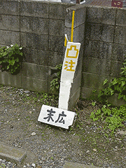 ![]() なんか長いぞぉ、これ。 6月11日 北区 王子 ![]() 雰囲気的に「勝手口」と書いてあるのかと 思ったら違いました。 6月13日 千代田区 大手町 ![]() 股間の張りをマッサージか!と、 初めは面白いと思ったのですが、 よく見たら先生の名前「ごかん」の濁点が 悪戯で消されていただけでした。 6月21日 練馬区 土支田 ![]() 小学生ではまだ皮がね・・いや、いいです。次。 6月21日 練馬区 土支田 ![]() 駐車場の奥の凸部にぶつけないための配慮。 壁の上部がまさに「凸」の形状をしています。 6月21日 練馬区 土支田 ![]() 上の二行の時点で人間は入って来ない、 となると、三行目は犬に読ませるための一文? あと、契約している犬の場合はどうなのか。いないか。 6月28日 足立区 本木北町 ![]() 夜になったら閉店、というワケでもないのですけどね。 6月28日 足立区 本木北町 ![]() こぶ茶でも出しているのですかね。 6月28日 足立区 西新井本町 ![]() 家から連れて来てますよね、これは。 大きさから言って、この犬のフンでもないですし。 6月28日 足立区 西新井本町 ![]() 看板を隠し過ぎ。 6月28日 足立区 西新井本町 ![]() 店名、横文字だったら何でも良かったのかな・・。 7月16日 足立区 興野 ![]() これに100人は乗れないとは思いますが。 7月16日 足立区 千住元町 ![]() 多沢さんに参加してほしいというワケではなく、 「多数」と「沢山」が混ざっちゃったものと思われます。 7月16日 足立区 千住龍田町 ![]() 普通こんな所に駐車しませんよね!? まるでクルマがお参りしているみたいです。 交通安全祈願で有名なお寺だからいいのかな? 7月16日 足立区 西新井大師 おわり。 その19へ ←お散歩写真処分市 その20→ その21へ 2ページへ戻る 1ページへ戻る やだなぁ Top |