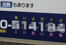 ![]() 食品への不安が高まっていますが、これは、 熱くて危ないとか、そういう事らしいです。 8月5日 台東区 浅草 ![]() 植えられた植物にこういう名札、 よく付いていますよね。 ![]() でも隅から隅まで、 全部に同じ札を付けなくても良い気がします。 8月5日 港区 海岸 ![]() 植木という名の植木屋。 8月7日 横浜市 西区 ![]() デスノート。デスマーチ。デスカウント。 死へのカウントダウン。恐ろしや。 8月9日 川崎市 砂子 ![]() アンタが飛んでどうするよ。 8月9日 中央区 日本橋 ![]() 墓石屋の広告。 あの世から「来いよ」と言われても・・。 それを気にして別の語呂合わせを並記したのかも。 8月12日 葛飾区 青戸 ![]() 江戸は都会だと思っていたのですが。 8月15日 川崎市 砂子 ![]() 右の方は乳首付きオッパイに脚が生えた化け物でしょうか。 8月15日 川崎市 砂子 ![]() 屋号が「かぐや姫」ということは、 業種が「どんぐりハウス」なのでしょう。 8月15日 川崎市 砂子 ![]() こんなに古い看板が現役。渋い。 8月22日 葛飾区 西亀有 ![]() 道路沿いに並ぶ石製のポールに、 児童の作と思しき標語が彫られていました。 ![]() 交通安全。 ![]() 環境保全。 ![]() 「毎日にゆとりを持って暮らそうね」 生活の見直し? ![]() 「公園は午後五時過ぎは危ないよ」 夕方くらいで危ないとは物騒です。 ![]() 「夜遊びは危険すぎるよやめようね」 夕方で危ないなら当然か。 ![]() 「みんなの地球ゴミだらけ 緑がないてるかわいそう」 確かに可哀想ですね。 ![]() このポールの作品の子はもっと可哀想ですけどね。 ![]() 「さんきょうであそんだころがなつかしい」 ただの想い出でしょうが。コレは。 「さんきょう」って何なんですか。 8月22日 葛飾区 西亀有 ▼後半へ進む やだなぁ Top |