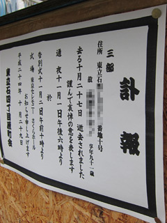 なるほどそりゃ古い・・。 11月11日 足立区 千住桜木 ![]() 写真館の「還暦記念撮影」のポスター。 このモデルは米寿くらいに見えますが。 12月2日 足立区 西保木間 ![]() 何故こういう屋号なのか。 12月21日 江東区 住吉 ![]() 引退後もフライの道へと進んだワケですね。 12月26日 葛飾区 新小岩