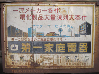 古い民家の塀に、 昔の「第一家電」の広告看板が残っていました。 そういえば第一家電って現存していないのですね・・。 11月7日 中野区 弥生町 ![]() スカンフッしエッグ?? こういうのは中国製品のラベルでよく見掛けますが、 手書きは珍しいかも。 11月7日 新宿区北新宿 ![]() 「ちい散歩」に出たから安心と言えるかどうかは知りませんが。 追悼の意味も込めまして。 11月10日 板橋区 蓮沼 ![]() 「暖簾が掛かっていれば営業中、掛かっていなければ休み」 という先入観を根本から覆されました。 11月10日 板橋区 蓮沼 ![]() 板橋区立志村第四中学校。 カッコ良い校舎ですね〜。 11月10日 板橋区 志村 ![]() 流行の兆しって・・一体いつの話なのか?