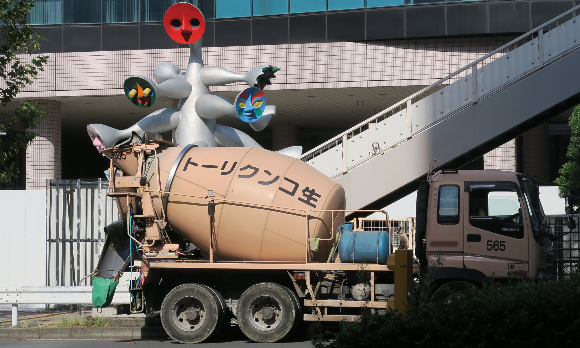 背後には岡本太郎作「こどもの樹」が。