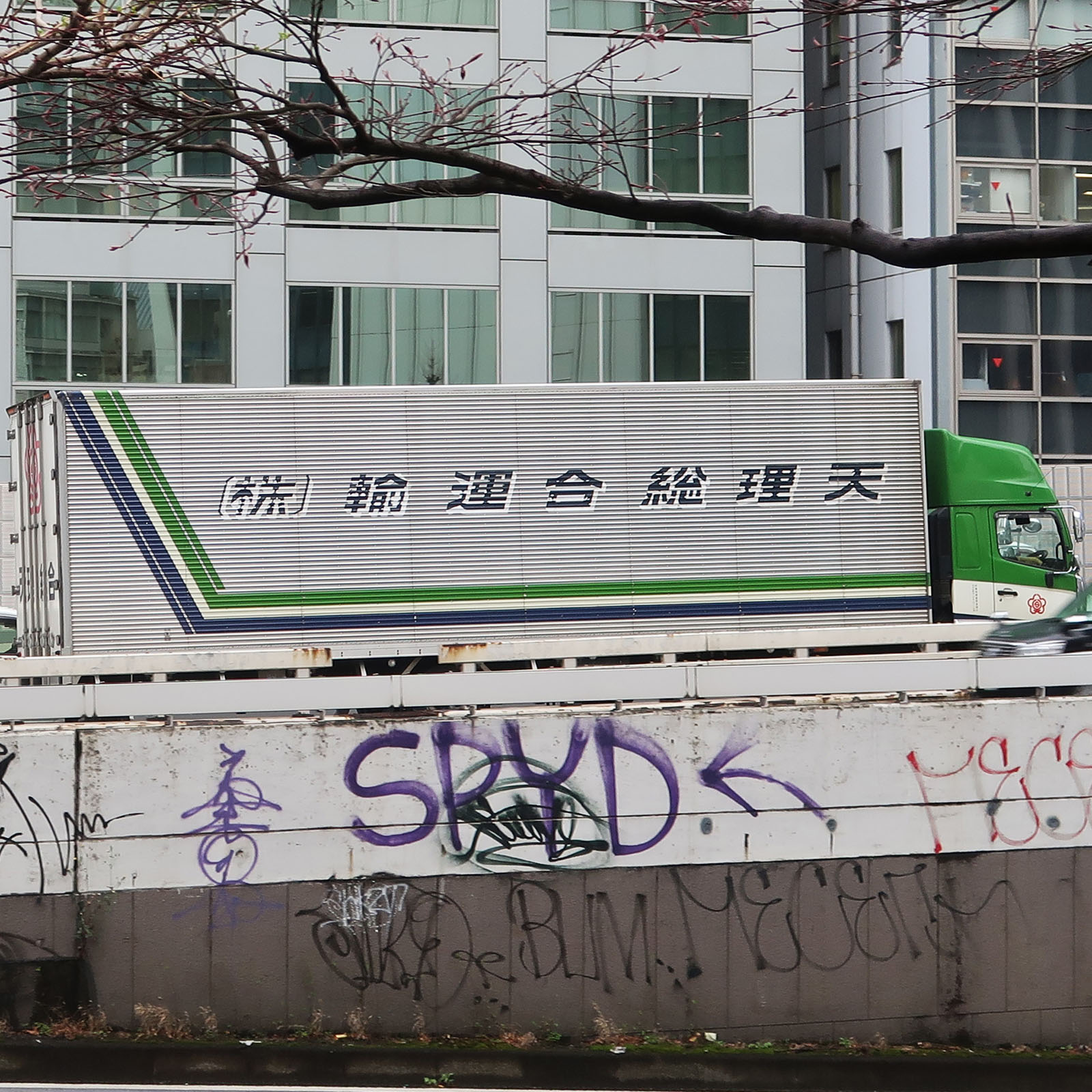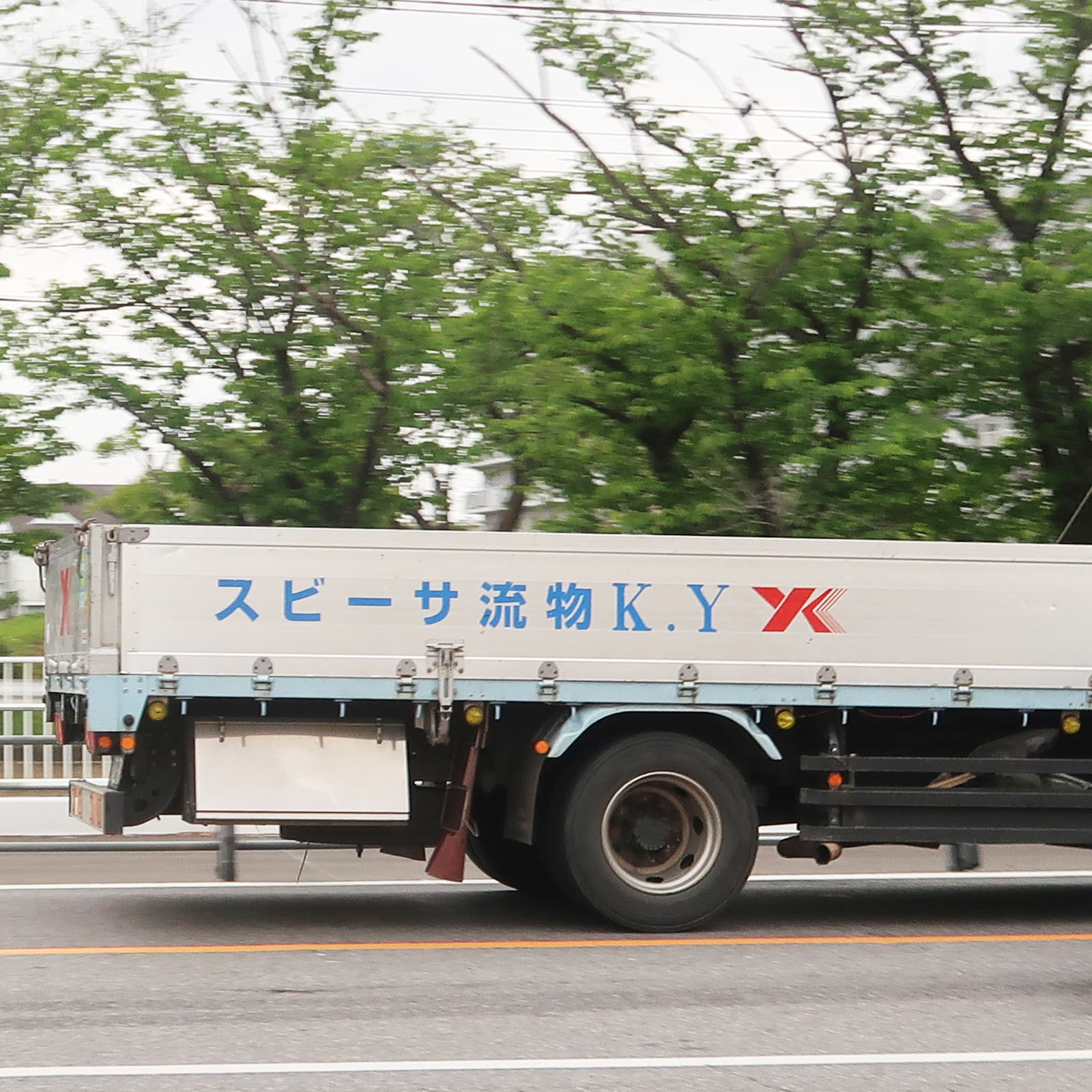 中央に柵がある道路は車体の文字が隠れてしまいがちなので、